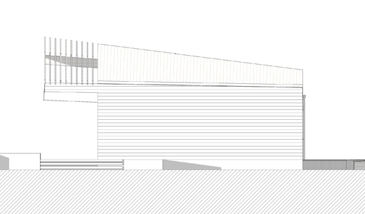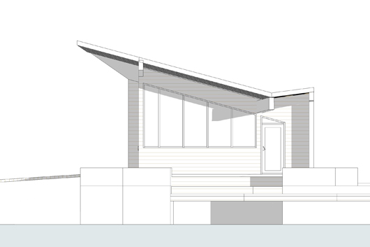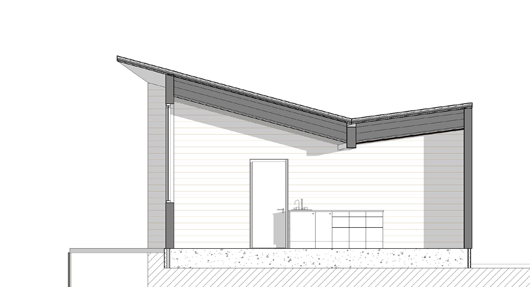 Precis som syskonbyggnaden för gästhamnsservice från hamnens första utbyggnadsetapp, är det här huset en massivträkonstruktion, där massivträstommen är exponerad exteriört i fasaderna. Takbeläggningen är också i trä, ett sk faltak. Taket och fasaderna mot land är behandlade med väldoftande ”bryggsmörja” eller ”Roslagsmahogny” – en mörkpigmenterad, traditionstyngd blandning av tjära med linolja. Invändigt är väggar och tak ljust vita, liksom i de anslutande utvändiga rum, som byggnaden omfamnar mot söder och väster. Gamla betongfundament från tidigare konstruktioner i hamnen har bibehållits och integrerats i den nya anläggningen. Bl a lånar ett fd isverk sin grundläggning till den nya gästhamnsbyggnaden.